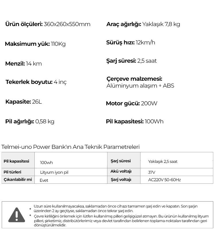 Telmei-uno Akıllı Scooter Valiz Ürün Özellikleri