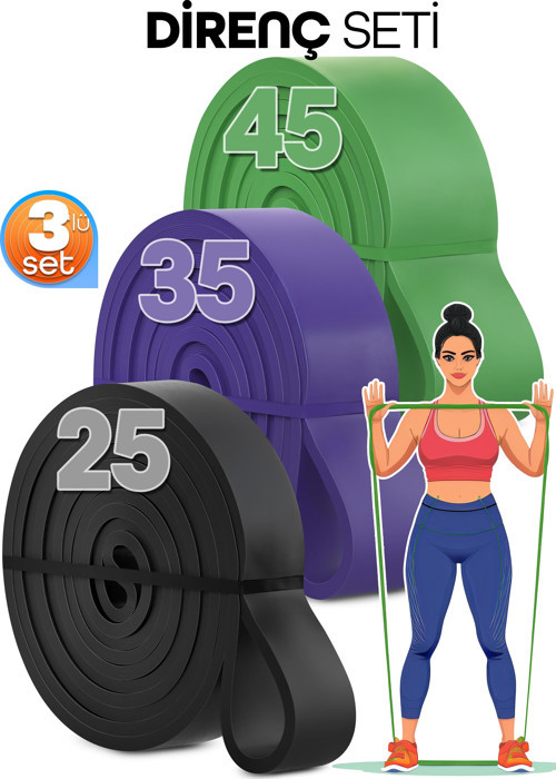 Telvesse 25 + 35 + 45 KG 3'lü SET Barfiks Lastiği Gym Resistance Band Antrenman Kas Geliştirme Bandı