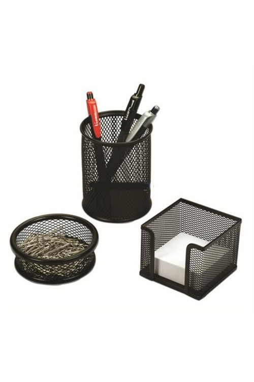 1 adet Kalemlik 1 adet Küpblokluk kağıtlık (Kağıtlık hariç) 1 adet Ataşlık ?Standart boy ?Paslanmaya karşı dayanıklı ?Tamamı metal ?Uzun ömürlü dayanıklı malzeme Estetik klasik ofis tipi masa üstü kalemlik Ürünlerin görseli için teşhir amaçlı kullanılan, kalem, kağıt, ataş gibi ürünler teşhir amaçlıdır
