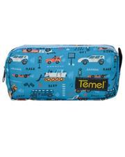 Temel Taşıt Desenli Okyanus Mavisi Tek Gözlü Kalem Çantası
