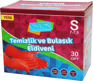 Onton Bulaşık ve Temizlik Eldiveni 30 Çift S Beden (7 - 7,5) Kırmızı Lateks
