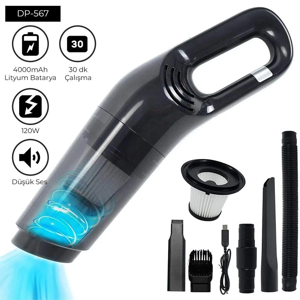Üflemeli Şarjlı Araç Mini El Süpürgesi 20.000 Pa Emiş Güçlü 4in1 Araba Süpürgesi Hl-121