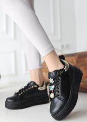 Detay: Bağcıklı Dolgu Topuklu Gold Detaylı Spor