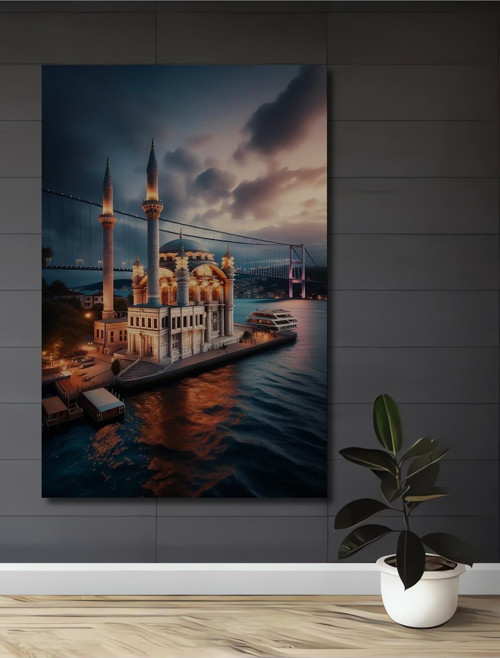 İstanbul Boğazı Ortaköy Camii Yağlı Boya Görünümlü Ahşap Mdf Dekoratif Dikdörtgen Tablo