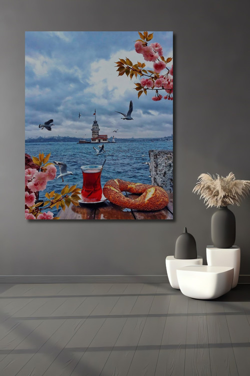 İstanbul Çay Simit Ve Martılar Dekoratif Ahşap Mdf Dikdörtgen Ev,İşyeri Duvar Tablo