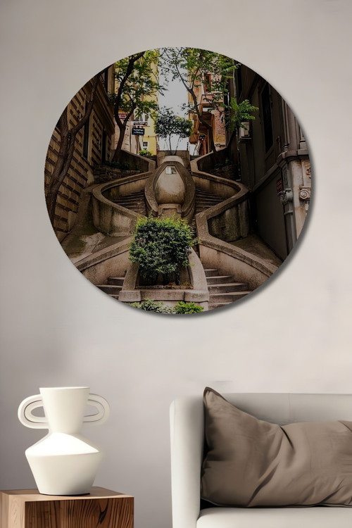 Tarihi Yarımada Sulu Boya Görünümlü Dekoratif Ahşap Yuvarlak Ev,İşyeri Duvar Tablo