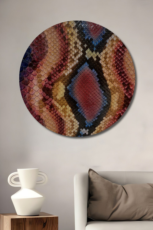 Yılan Derisi Desenli Ahşap Mdf Dekoratif Yuvarlak Ev,İşyeri Duvar Tablo