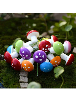 Karışık Renklerde Mantar Teraryum Minyatür Süsleme (10 ADET)