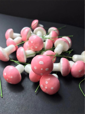 Pembe Beyaz Mantar Teraryum Minyatür Süsleme (25 ADET)