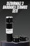 Mbb E-Ticaret Termos Seti Paslanmaz Çelik 3 Bardaklı Vakumlu Termos Set 500 Ml 12 Saate Kadar Isı Koruma