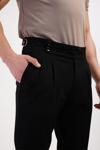 TERRALIS Düğme ve Kemer Detaylı Kumaş Pantolon - Siyah