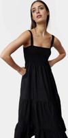 Elbisenin %50 polyester, %50 pamuk karışımından oluşan kumaşı, nefes alabilir ve dayanıklıdır. Astarlı yapısı da gün boyu konforlu bir kullanım sağlar. Standart kol tasarımı sayesinde rahat hareket edebilir ve tüm gün kendinizi iyi hissedebilirsiniz. Düz ve sade tasarımıyla, her türlü aksesuara ve ayakkabıya mükemmel uyum sağlar. Eteğinin belden açılan tasarımı, elbiseye hareketli ve dinamik bir görünüm katıyor.