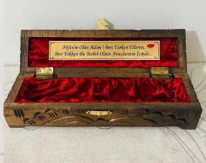 Özel Mesaj Yazılı Kahverengi Ahşap Elegance Hediye Tesbih Kutusu (M1) - Image 1