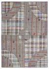 Halinet Gri Patchwork Etnik Modern Desenli Yün Hav Toz Vermez Leke Tutmayan Salon Yolluk Mutfak El Dokuma Halı