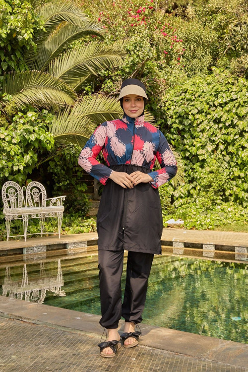 Tesettür giyim koleksiyonuna özel olarak tasarlanmış bu mayo, modern çizgilerle geleneksel tesettür modasını harmanlar.