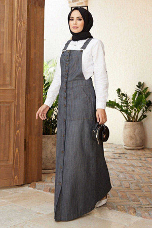 2210-Denim Efsanem Mevlana salopet Koyu Mavi