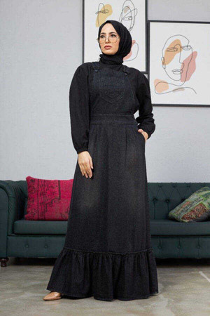 2225-DENİM YAN CEPLİ SALOPET ETEK Siyah