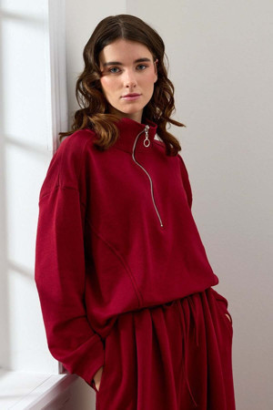 Bordo 3 İplik Yarım Fermuarlı Sweat