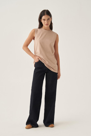 Taş-Pamuklu Yaka Biyeli Kolsuz Tunik