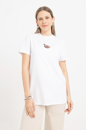 Beyaz-Kısa Kollu Nakış Detaylı Süprem Tshirt