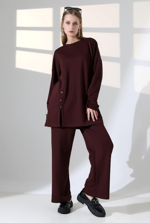 BAV Butik Ayvitrin V Yaka Tesettür Ikili Takım Bordo