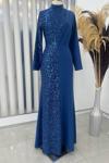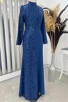 Esilanur Bersu Önü Pul Boncuk İşlemeli Tesettür Abiye Lacivert