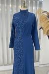 Bersu Önü Pul Boncuk İşlemeli Tesettür Abiye Lacivert - Image 1
