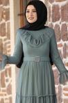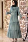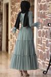 Ürün Adı : Damla Tesettür Elbise Kumaş Özelliği: Tül Şifon Mevsim: 4 Mevsim Yaka: Yuvarlak Kalıp: Normal kalıp Astar: Astarlı Ürün Boyu: 150 CM Ürün Özelliği: Arkadan gizli fermuarlıdır / Etek kısmı piliseli / KEMER ÜRÜNE DAHİLDİR Manken Ölçüleri Beden : 38 Boy: 170 cm