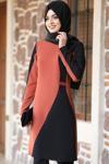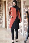Ka Hijab Pile Detaylı İkili Takım - Kiremit