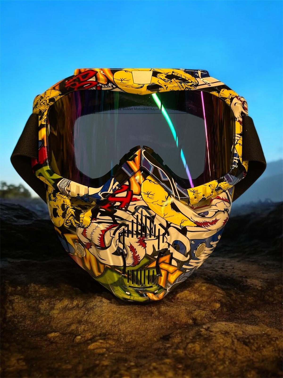 Sarissa Tex 710 Jet Maske Bisiklet Motosiklet Kayak Çok Amaçlı Maske Mor Cam Aynalı Gözlük Joker Desenli