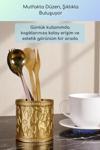 Tezgah Üstü Kaşıklık Dekoratif Dik Kaşıklık Silindir Kaşıklık Altın Renk Model 76