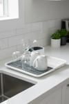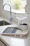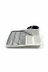 Mutfakta hem şıklığı hem de düzeni bir arada arayanlar için tasarlanan yeni nesil tezgah üstü bulaşıklık ile tanışın! Yıkadığınız bulaşıkları kuruturken tezgahınızın ıslanmasını ve dağınık görünmesini engelleyen bu set, modern tasarımıyla mutfağınıza estetik bir hava katacak.; Geniş iç hacmi ve akıllıca tasarlanmış bölmeleri sayesinde tabak, bardak, tencere kapağı ve çatal-bıçak takımlarınızı tek bir yerde kolayca organize edebilirsiniz.; Çok Fonksiyonlu Bölmeler: Tabaklık Alanı: Dikey tasarımlı beyaz bölme, tabaklarınızın (en fazla 6-8 adet) dik durarak hızlıca kurumasını sağlar.; Bardaklık ve Düz Alan: Koyu gri dalgalı yüzey; bardak, kupa, kase veya küçük tencereleri devrilme riski olmadan yerleştirmeniz için idealdir.; Entegre Kaşıklık: Üç geniş bölmeli kaşıklık ünitesi, çatal, kaşık ve bıçaklarınızı gruplayarak kurutmanıza olanak tanır.; Su Toplama Tepsisi: Alt kısımda bulunan beyaz tepsi, bulaşıklardan süzülen tüm suyu toplayarak tezgahınızın kuru ve temiz kalmasını garanti eder.; İdeal Boyutlar: Ne çok büyük ne de çok küçük! 42 x 33,5 cm'lik boyutuyla çoğu standart mutfak tezgahı için mükemmeldir.; Ürün Ölçüleri: 42x33,5x11,5 cm