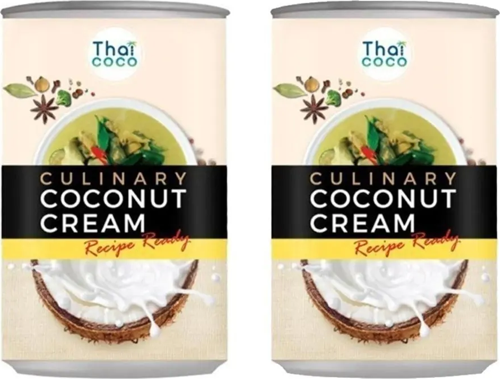 - Paket, thai coco kuliner hindistan cevizi kreması 400 ml ve thai coco yağı azaltılmış hindistan cevizi sütü 400 ml içerir.