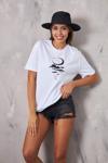 Eğlenceli Tasarım: Beyaz t-shirt üzerindeki "Ayda Sallanan Kadın" baskısı, enerjik ve yaratıcı bir görünüm sunar. Günlük hayatta şıklığınızı ve kişisel tarzınızı vurgular.