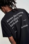 "Discovery" Baskılı Siyah Oversize Erkek T-Shirt ile hem konforu hem de stili bir arada yakalayın.