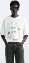 The Champ Clothing Bisiklet Yaka This Is Based On Real Life Story Baskılı Oversize Beyaz Erkek T-Shirt