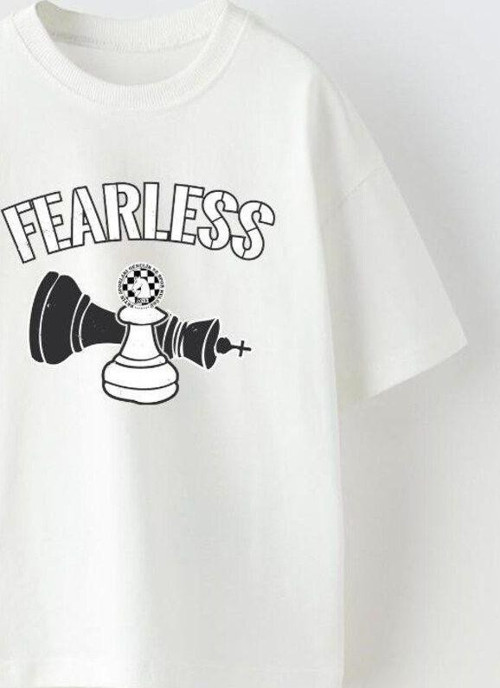 Fearless Yazılı Satranç Tasarım Baskılı Beyaz Çocuk T-Shirt Ürün Açıklaması: Cesur bir görünüm ve özgün bir tasarım arayan çocuklar için mükemmel bir seçenek! "Fearless" yazılı ve satranç tasarımı baskılı beyaz çocuk t-shirt, stil sahibi ve enerjik çocuklar için ideal. Özellikler: Materyal: %100 pamuk, yumuşak ve rahat