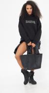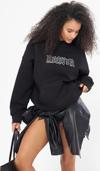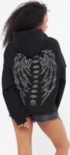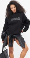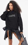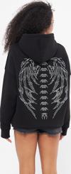 The Champ Clothing Heaven Yazılı Taş Baskılı Kapüşonlu İçi Polar Oversize Siyah Sweatshirt