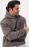 The Champ Clothing Kapüşonlu Içi Polar Eighty Five Yazı Baskılı Füme Oversize Hoodie Sweatshirt