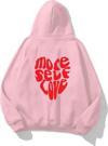 The Champ Clothing Kapüşonlu İçi Polar More Self Love Baskılı Pembe Unisex Hoodie Sweatshirt