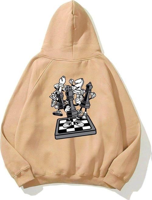 The Champ Clothing Kapüşonlu Içi Polar Satranç Think Baskılı Bej Unisex Hoodie Oversize Hoodie Sweatshirt