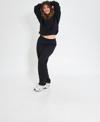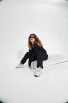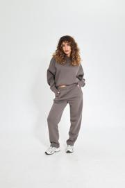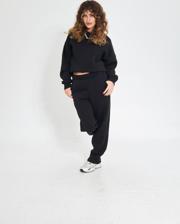 The Champ Clothing Siyah Kadın Bisiklet Yaka Bel Lastikli Bol Paça Oversize Eşofman Takımı