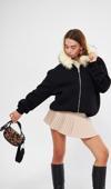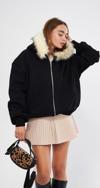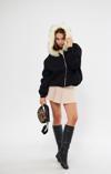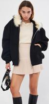 The Champ Clothing Siyah Kapüşonu Kürklü Fermuarlı Pamuklu Kadın Sweatshirt Hoodie