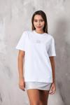Şık Taş İşlemeleri: Beyaz t-shirt üzerindeki taş detaylar, zarif bir ışıltı ve sofistike bir görünüm sunar. Hem günlük kullanıma hem de özel etkinliklere uygun şık bir seçenek.