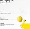 Gece Bakım Seti, cildi gece boyunca beslemeye ve onarmaya yardımcı üç güçlü formülden oluşur. Bu set, kuruluk, mat görünüm, ton eşitsizliği ve ince çizgiler gibi cilt sorunlarına karşı destek sağlar.