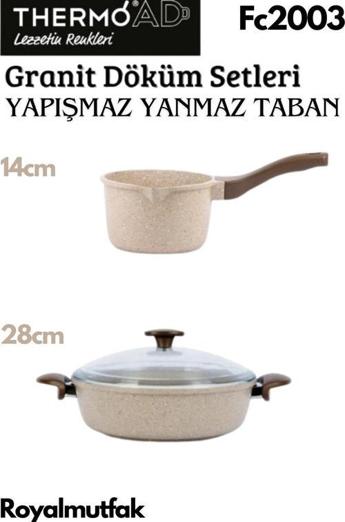 Thermoad Döküm Granit Vizon Karnıyarık Pilav Tencere 28Cm + Döküm Granit Sütlük - Sosluk / Vizon 14Cm