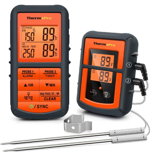 Çift problu, alarm özellikli 150 metre mesafeye kadar WiFi iletişim kurabilen barbekü termometresi.