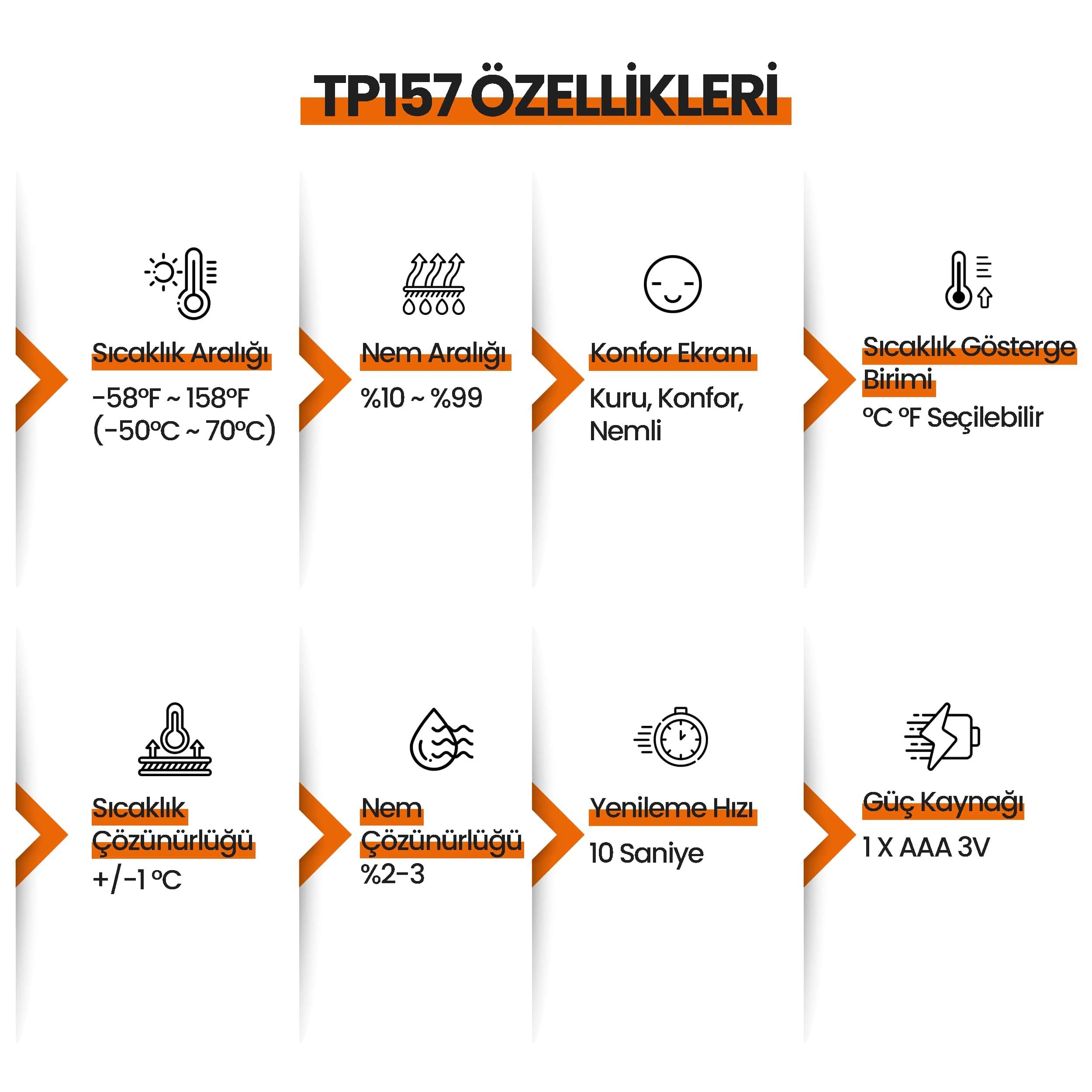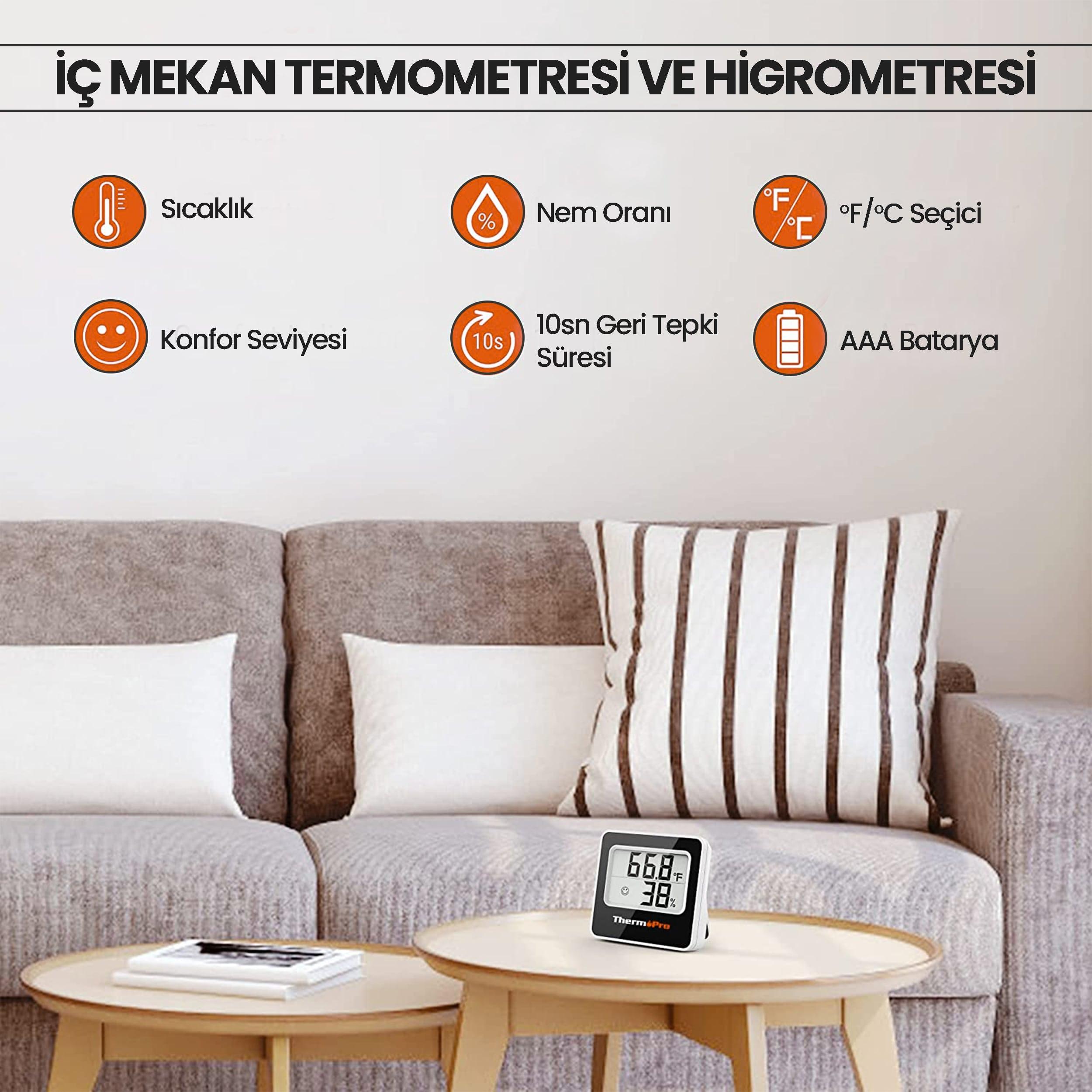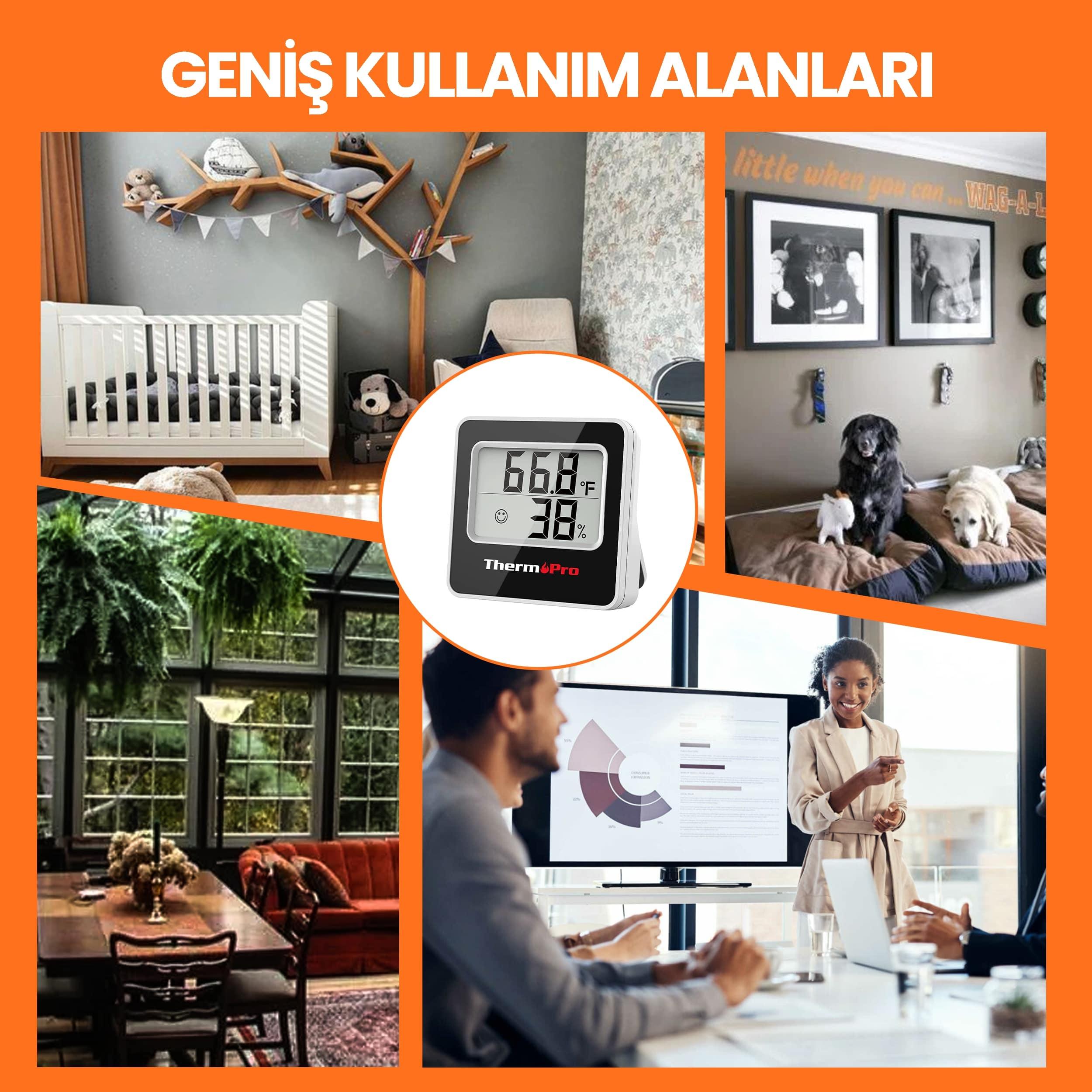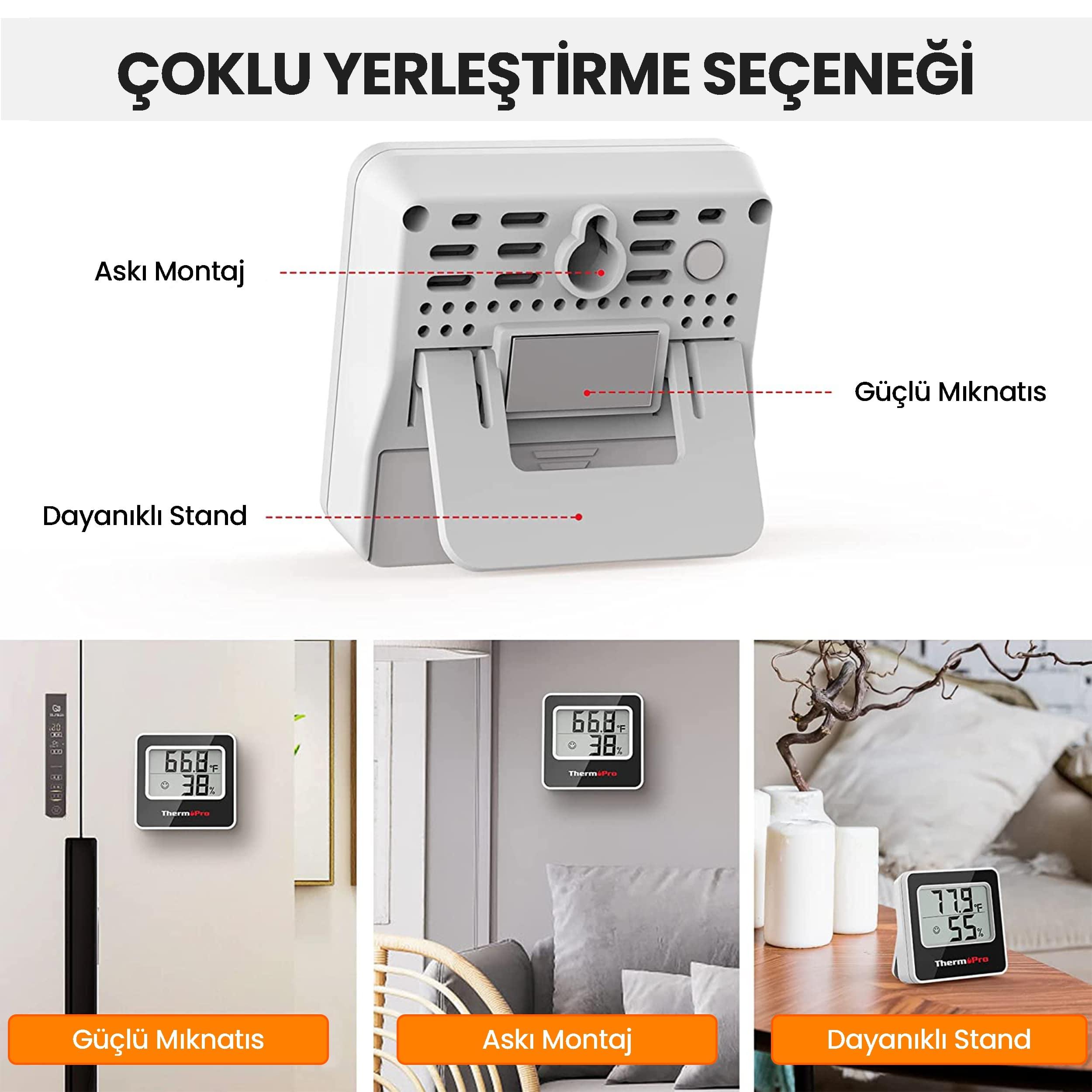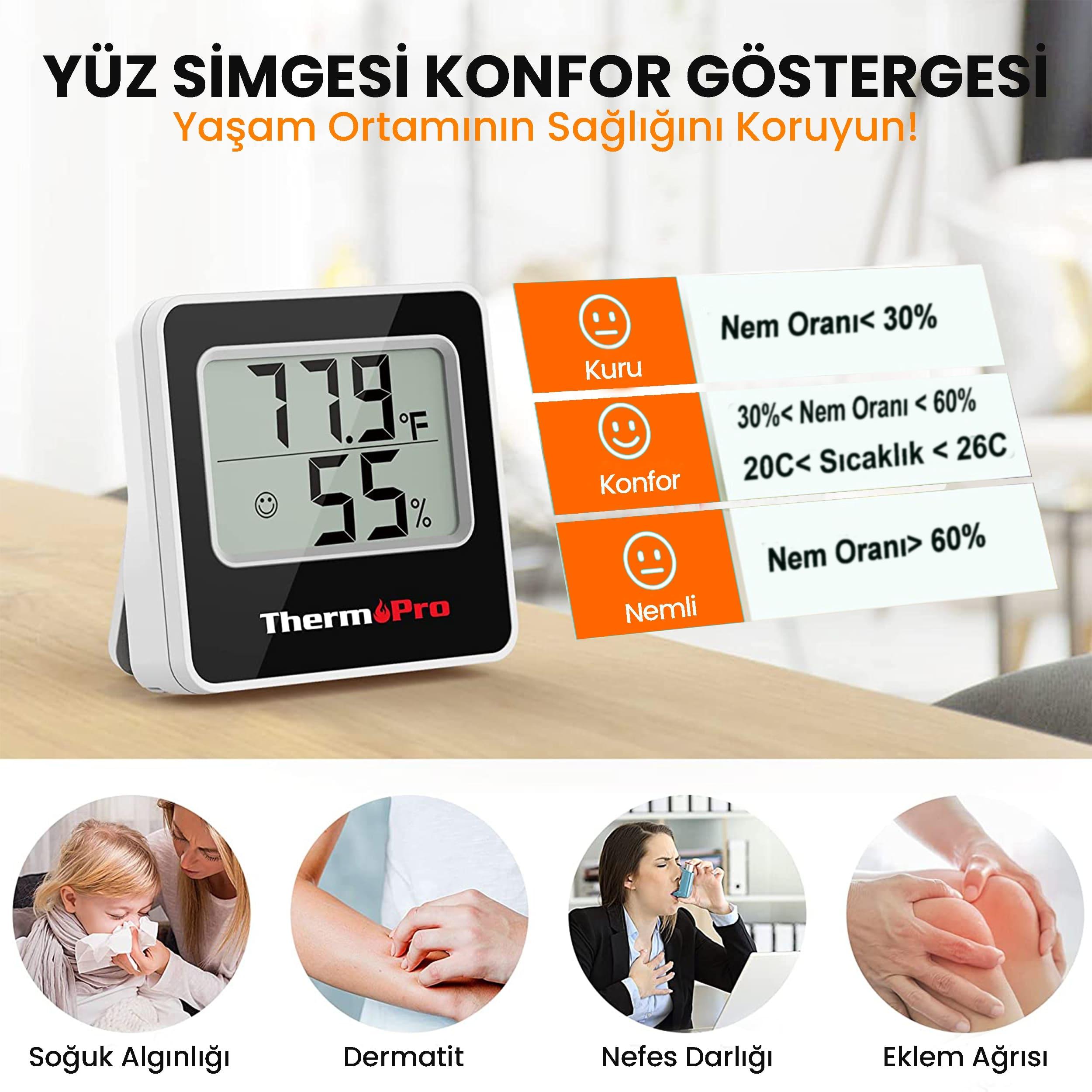 ThermoPro TP157 İç Mekan (Sera, Dolap, Bebek Odası) Hassas Sıcaklık ve Nem Ölçer Mini Termometre 2 Adet