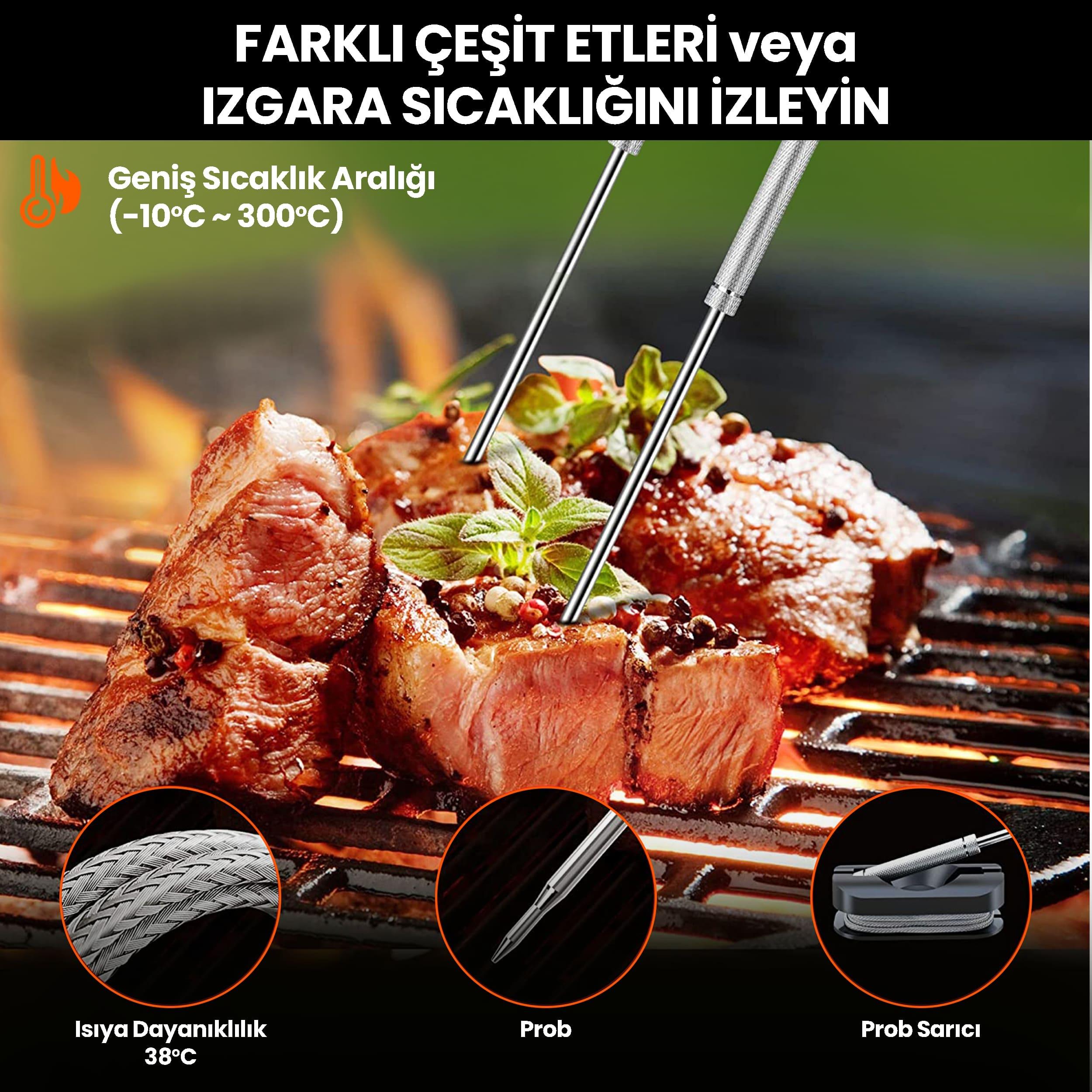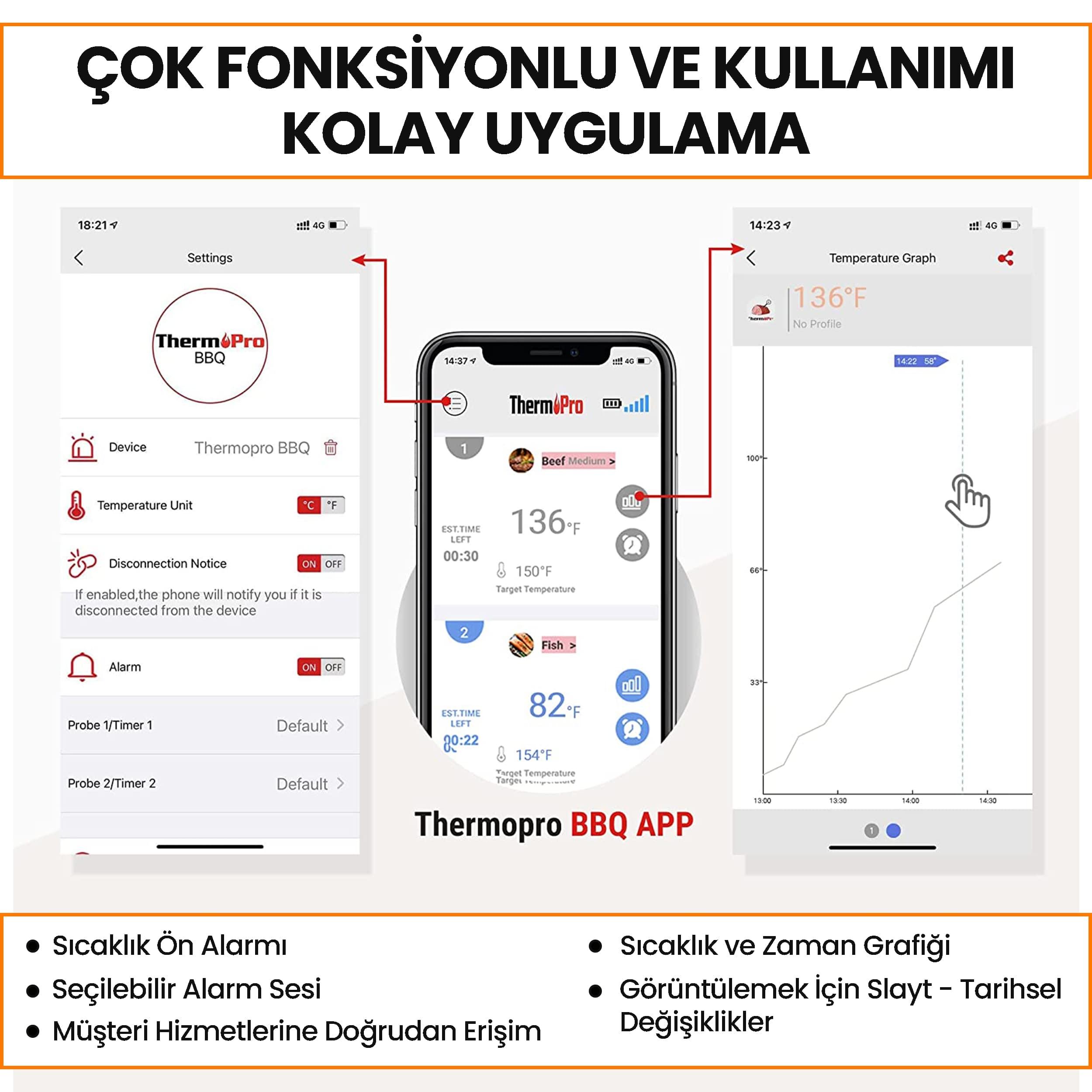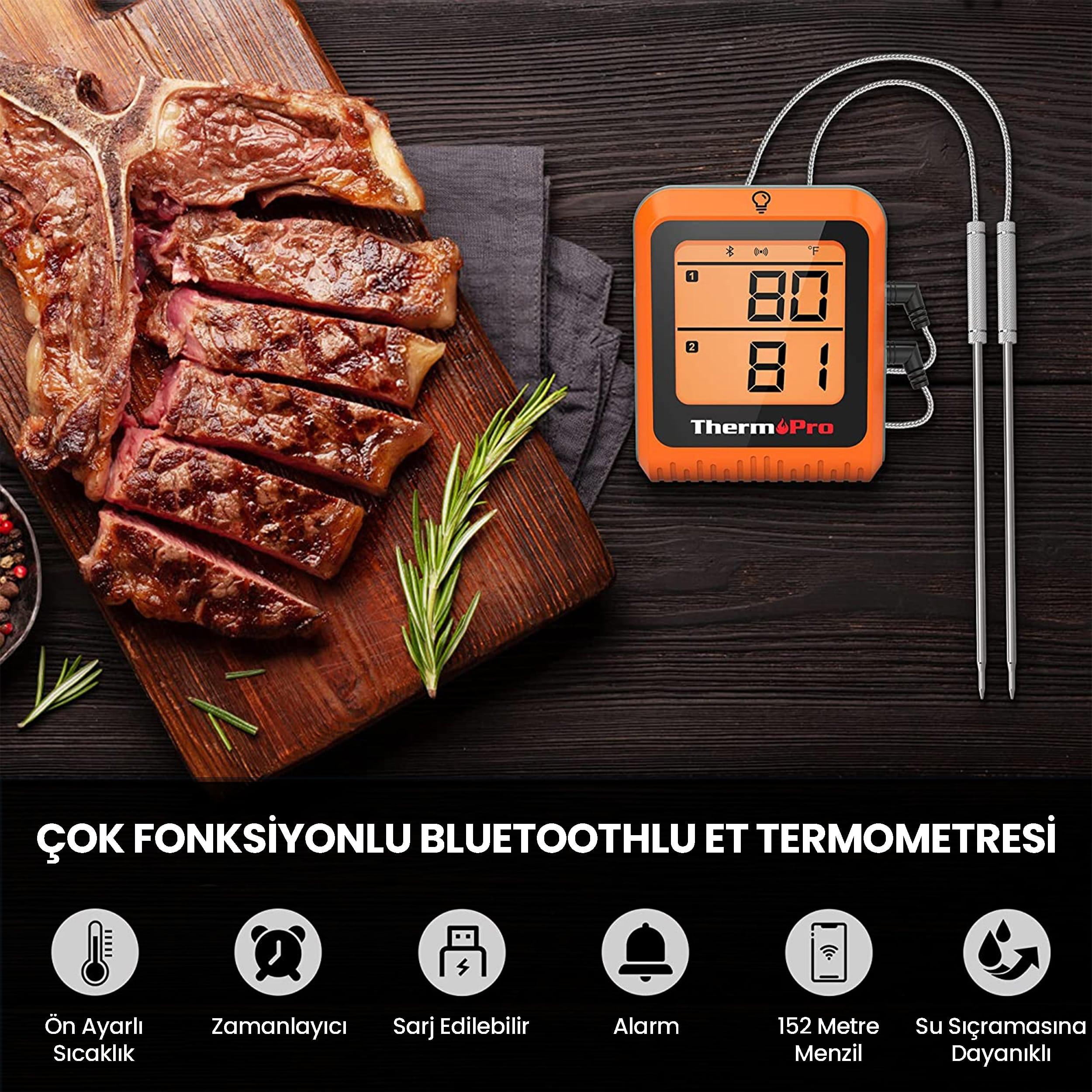 ThermoPro TP920 Cep Telefonu Kontrollü, Bluetooth ve Çift Problu Profesyonel Gıda Pişirme Termometre