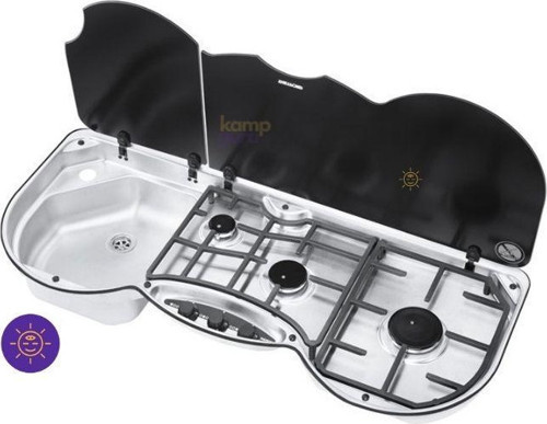 Thetford’un 353 serisi, üç ocak ve bir mutfak lavabosunu başarıyla birleştiriyor. 353 serisi kombinasyonu,